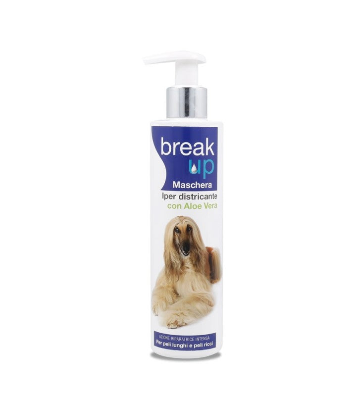 Aries Break Up Mask er specielt beregnet til racer med mellemlang og lang pels som hurtig danner filter, men er også velegnet til slidte og triste pelse. Den eksklusive sammensætning tilfører fugt og pleje til hud og pels. Allerede fra første vask er der en mærkbar forbedring i pelsens struktur, og samtidig bliver pelsen meget lettere at børste igennem. Resultatet er en velplejet, glansfuld, blød og luftig pels, som holder sig filtfri længere. Er velegnet til både hunde og katte.